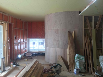 内装の仕上げは無垢の木材と漆喰壁で、素材の質感ある仕上がりになる予定です。